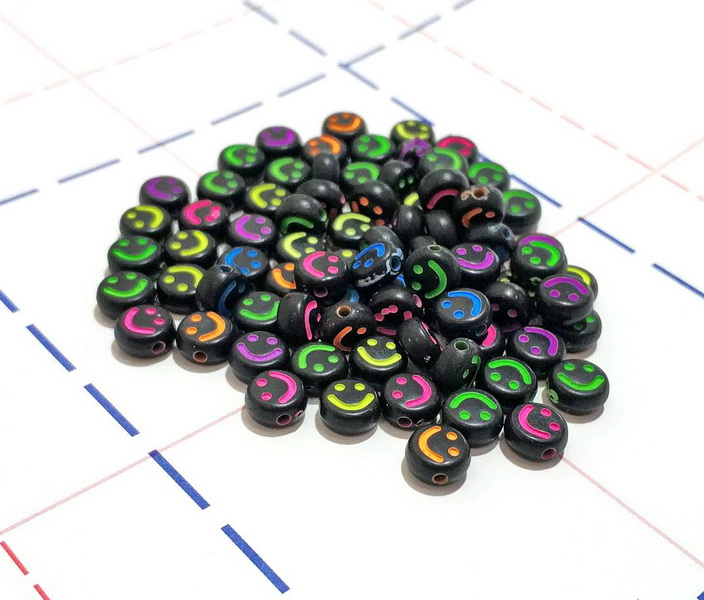 - Бусины круглые 7мм Смайлы 10гр/уп Черный/ассорти