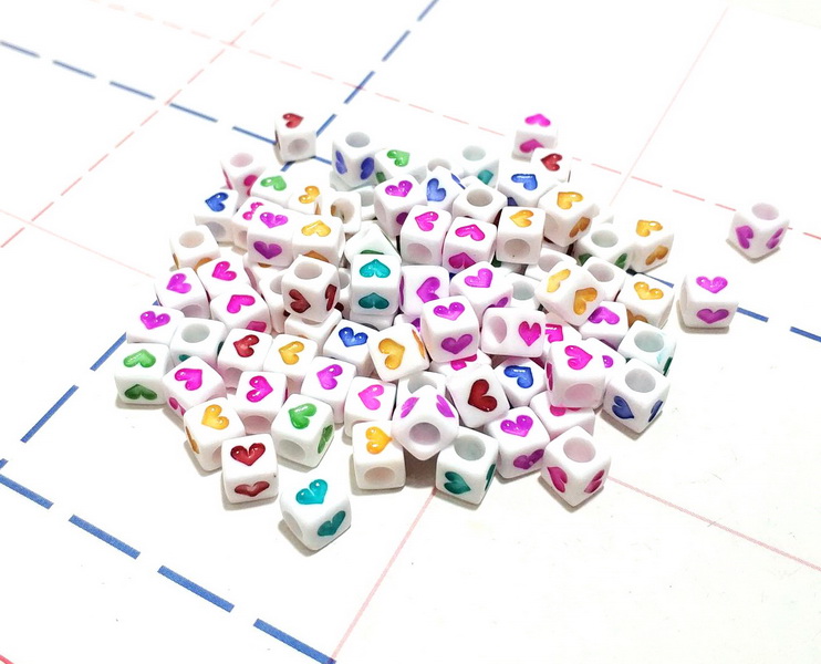 - Бусины квадратные 6мм Сердечко 10гр/уп Белый/ассорти