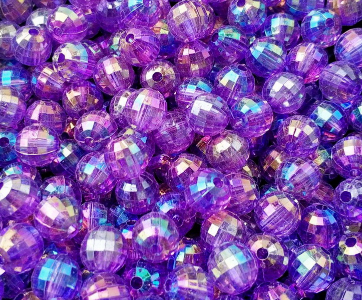- Бусы акрил Шар Граненые 10мм 50шт/уп Фиолетовый радужный