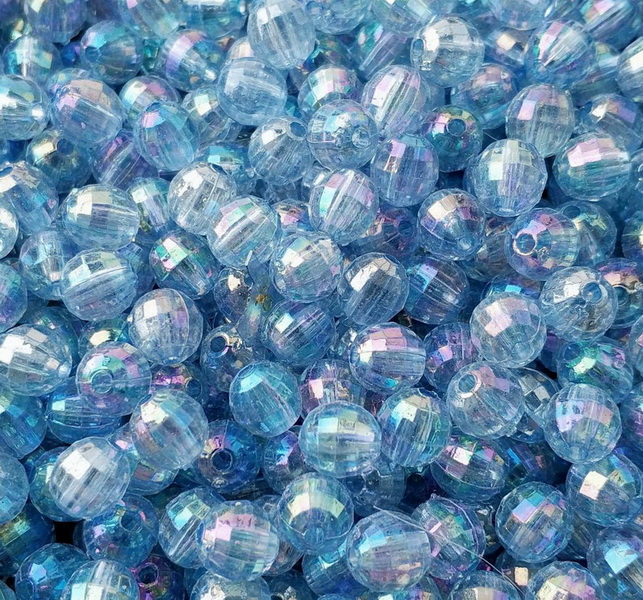 Назад Бусы акрил Шар Граненые 8мм УПАКОВКА 400гр (+-5гр) Голубой радужный