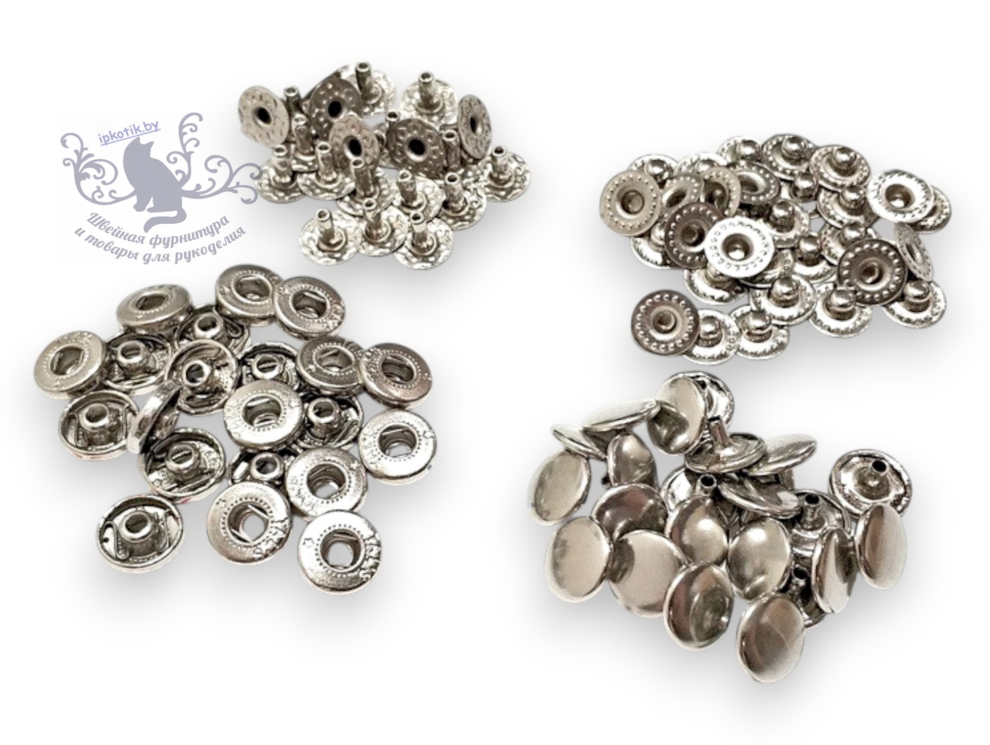 Металлофурнитура в большом ассортименте - карабины, полукольца, кольца, кнопки, застежки и крючки, пряжки и винты металлические, пуговицы джинсовые (болты джинсовые) - представлена в различных цветах и размерах. Для пошива в нашем интернет-магазине всегда в наличии в большом ассортиненте застежки молнии, лента эластичная, пластиковая фурнитура, манжеты и довязы, синтепон, ленты брючные, ленты клеевые, шнуры, бельевая фурнитура.Большой ассортимент товаров для рукоделия и творчества по очень выгодным ценам в интернет-магазине ipkotik.by.