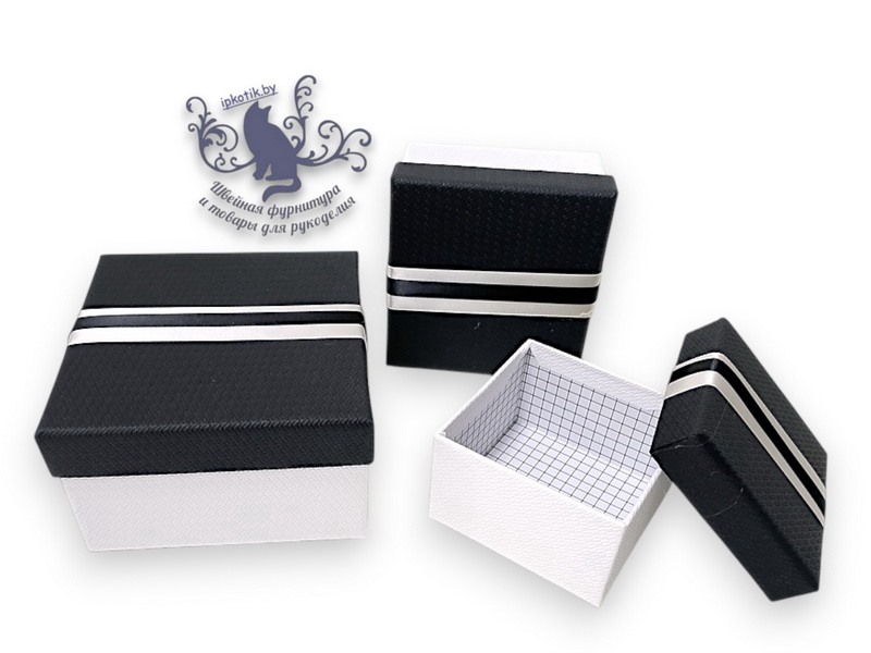 - Коробка подарочная Рогожка 9*9*5,5см Черный/белый