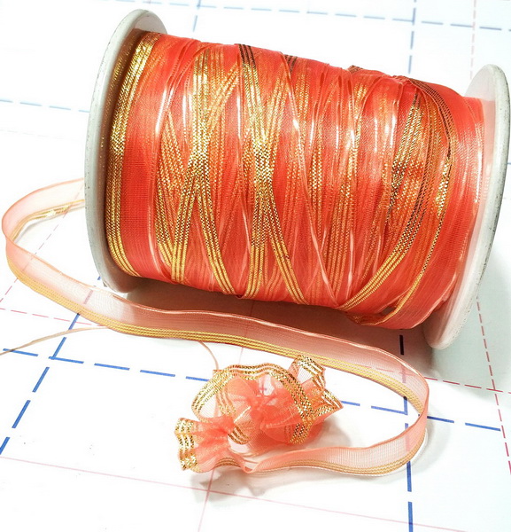 - Лента капрон люрекс с нитью 10мм 100м/боб Оранжевый