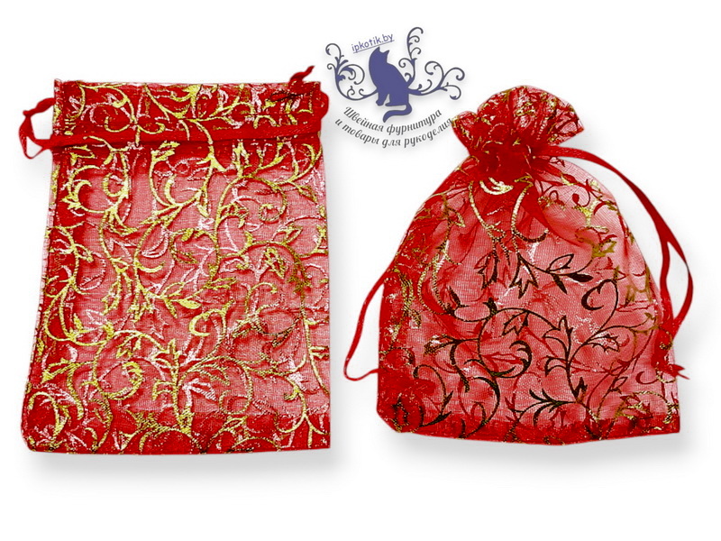 - Мешочек из органзы 12*9 см Красный с узором золото
