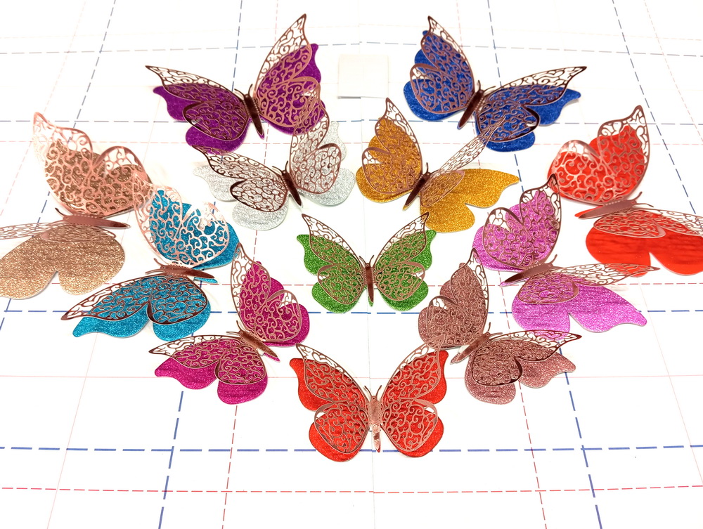 - Набор для декора 12 шт/уп Бабочки Розовое золото 8,10,12 см