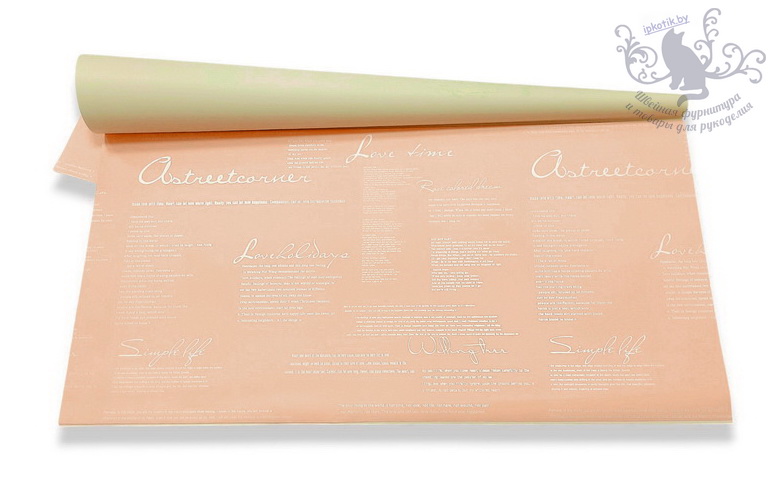 - Пленка матовая Премиум двусторонняя 57*57см (+-1см) Надписи Розовый персик/фисташка-03