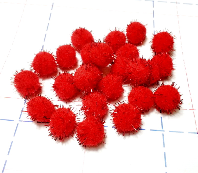 - Помпоны с люрексом 25мм (10шт/уп) Красный