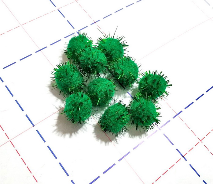 - Помпоны с люрексом 25мм 50(+-3шт)уп Темно-зеленый