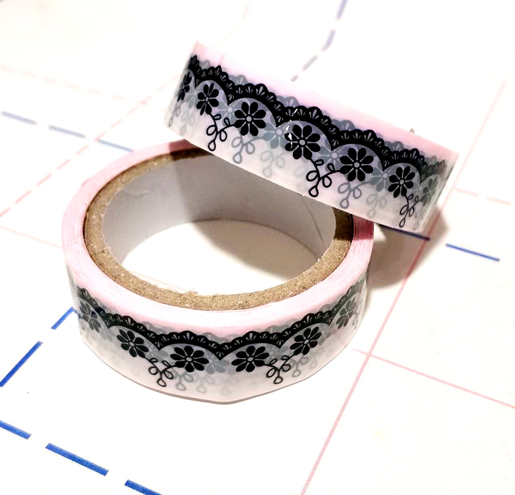 - Скотч декор розовый/черный-06 15мм 10м/боб
