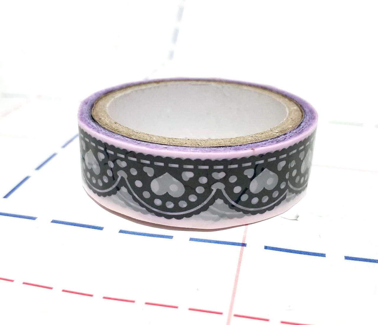 - Скотч декор розовый/черный-33 15мм 10м/боб