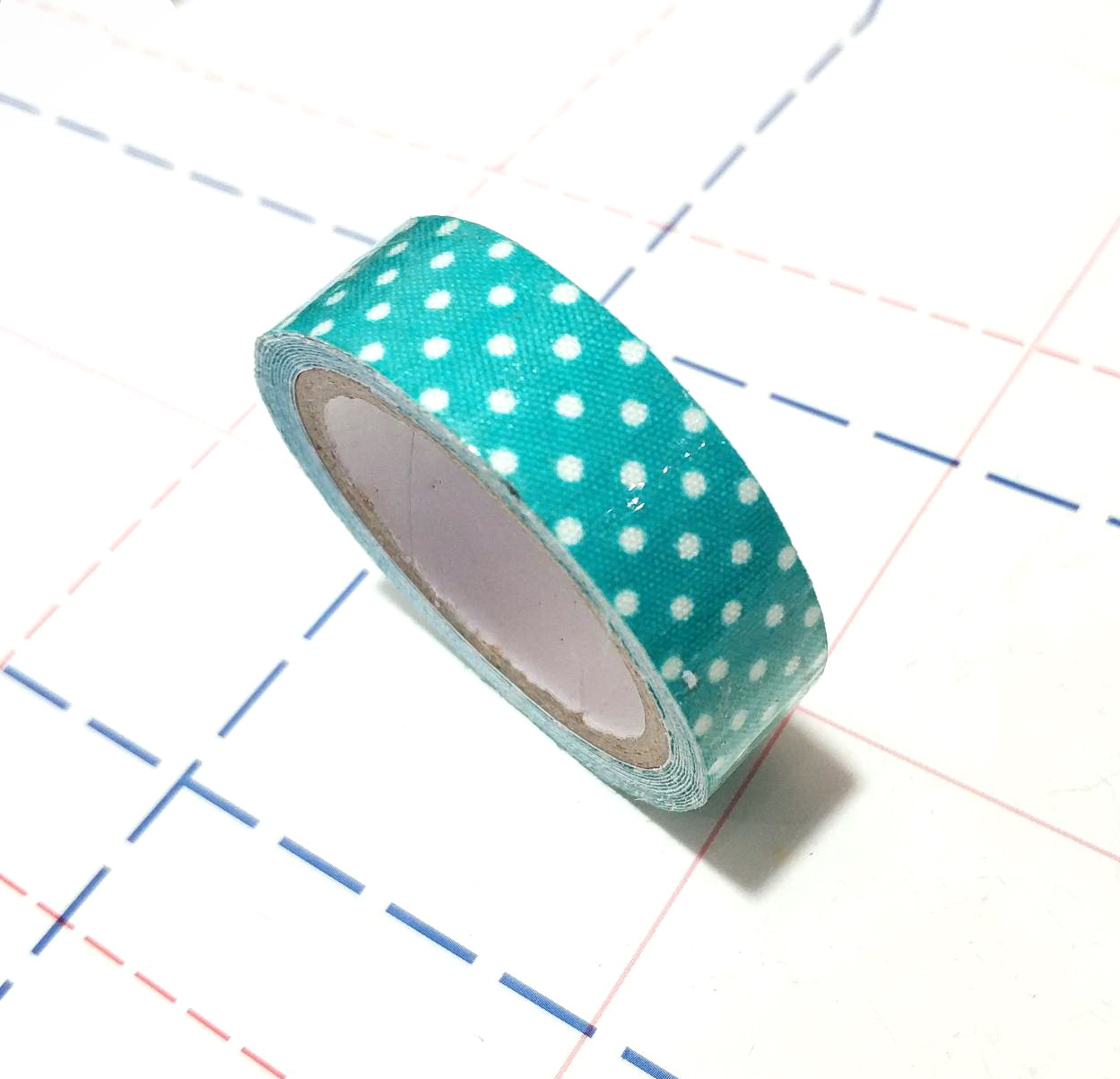 - Скотч декор тканевый 15мм 2м/боб Горох бирюзовый