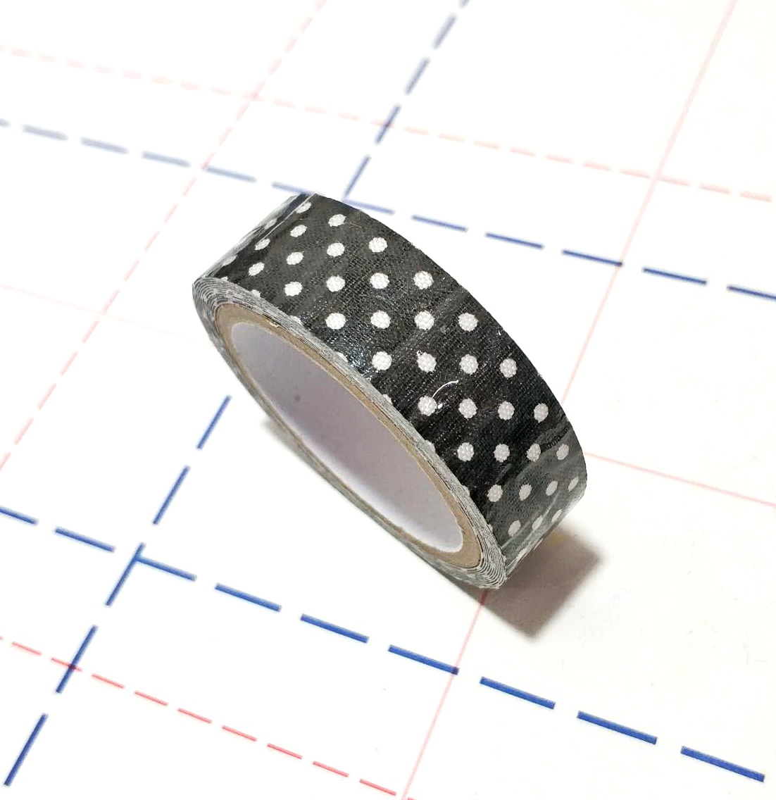 - Скотч декор тканевый 15мм 2м/боб Горох черный