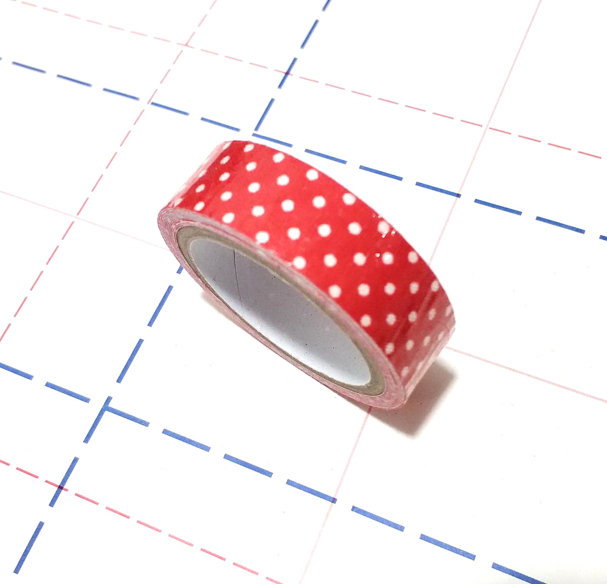 - Скотч декор тканевый 15мм 2м/боб Горох красный
