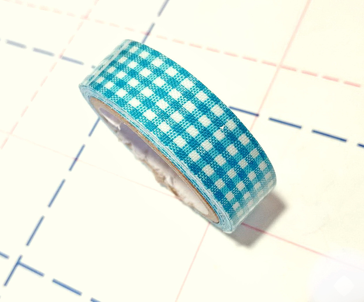 - Скотч декор тканевый 15мм 2м/боб Клетка бирюзовая