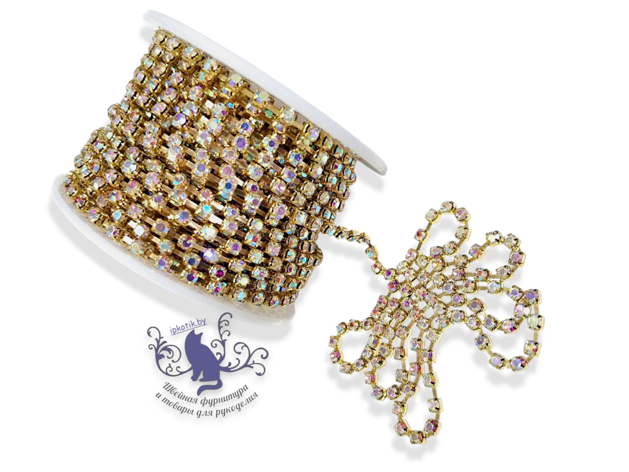 - Стразы цепочкой SS10 0,5м/уп Золото/Радужный