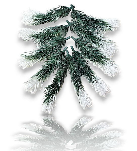 Назад ОПТОМ ДЕШЕВЛЕ_Ветки ели пластик 10см_Зеленый/белый_УПАКОВКА 20шт