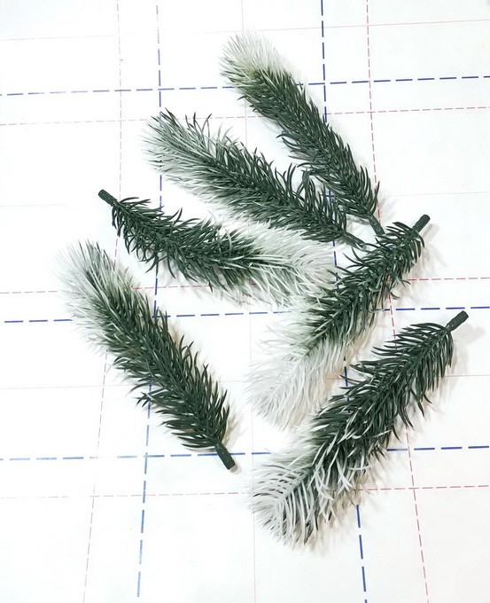 Назад ОПТОМ ДЕШЕВЛЕ_Ветки ели пластик 14см_Зеленый/белый_УПАКОВКА 20шт