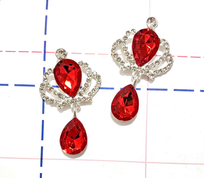 - Ювелирная серединка с подвеской Капля Корона 30*50мм Серебро/Красный