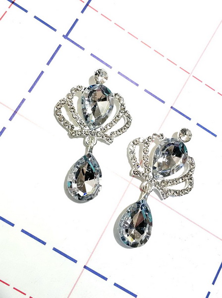 - Ювелирная серединка с подвеской Капля Корона 30*50мм Серебро/Прозрачный