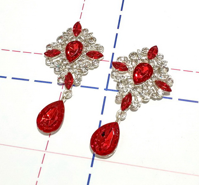 - Ювелирная серединка с подвеской Капля Крест 35*65мм Серебро/Красный