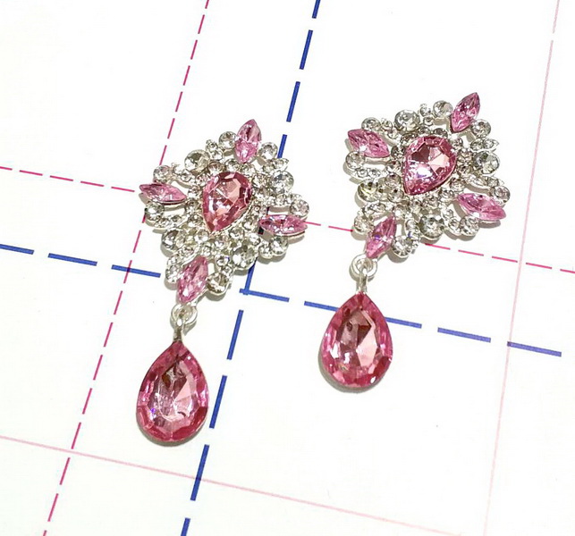 - Ювелирная серединка с подвеской Капля Крест 35*65мм Серебро/Светло-розовый