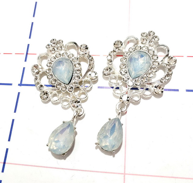 - Ювелирная серединка с подвеской Капля Узор 30*60мм Серебро/Белый опал