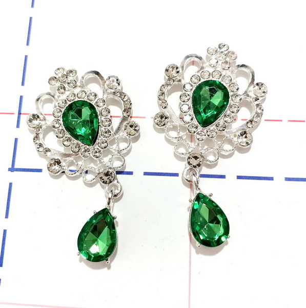 - Ювелирная серединка с подвеской Капля Узор 30*60мм Серебро/Зеленый
