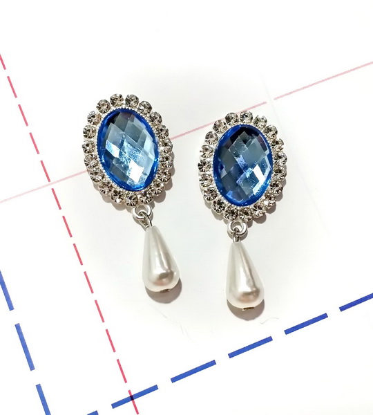Назад Ювелирная серединка с подвеской Овал Стразы 20*45мм Серебро/Голубой