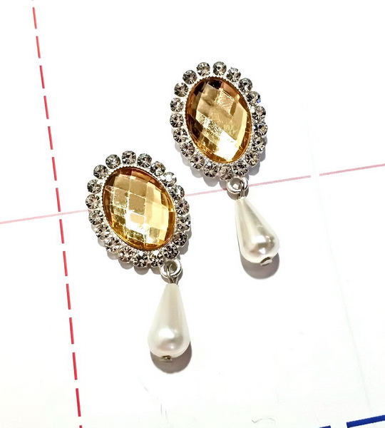 Назад Ювелирная серединка с подвеской Овал Стразы 20*45мм Серебро/Шампань