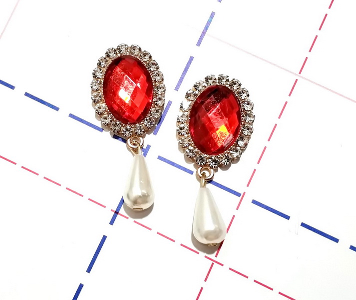 Назад Ювелирная серединка с подвеской Овал Стразы 20*45мм Золото/Красный