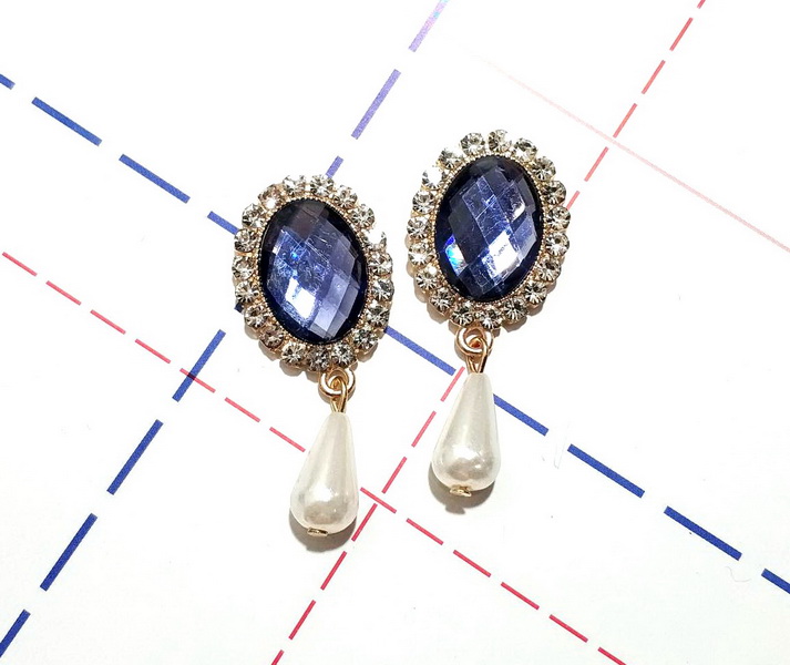 - Ювелирная серединка с подвеской Овал Стразы 20*45мм Золото/Темно-синий