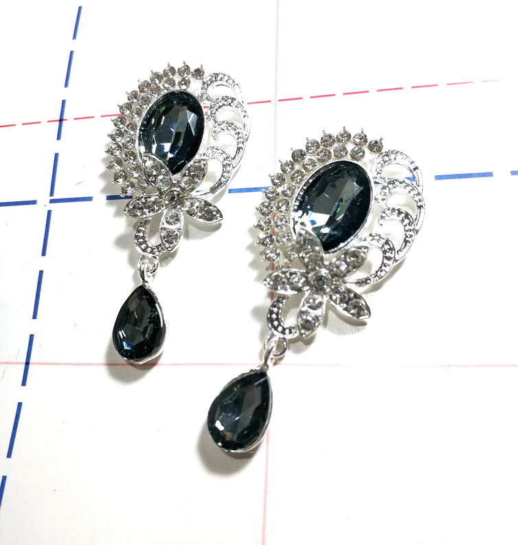 - Ювелирная серединка с подвеской Овал Цветок 30*62мм Серебро/Графит