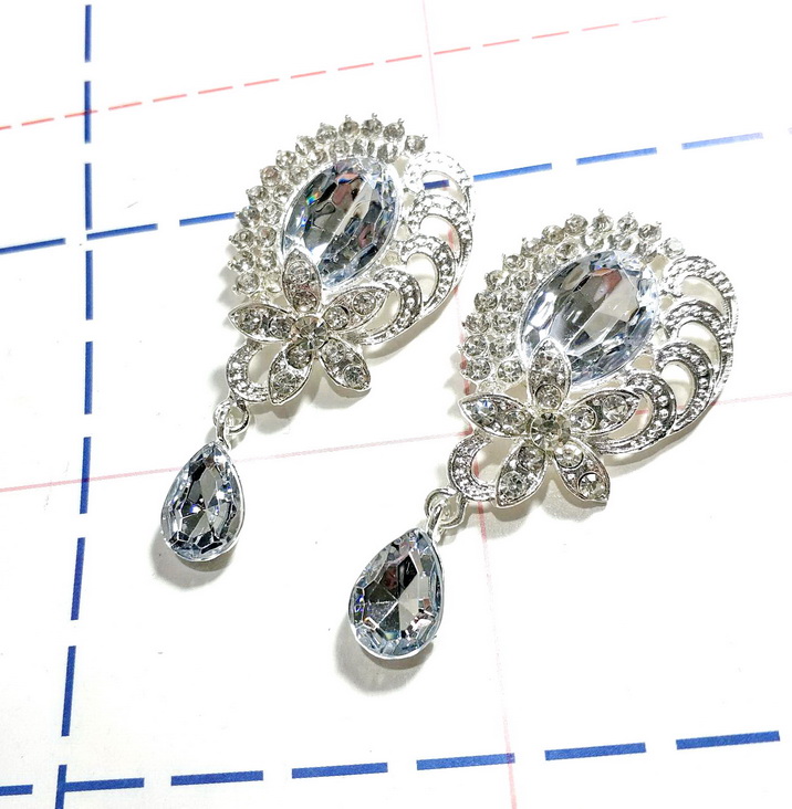 - Ювелирная серединка с подвеской Овал Цветок 30*62мм Серебро/Прозрачный