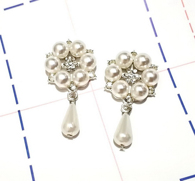- Ювелирная серединка с подвеской Цветок 25*45мм Серебро/Жемчуг