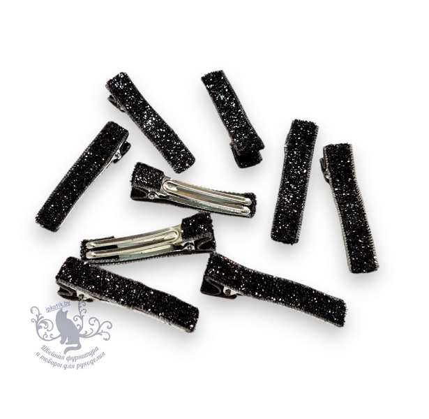 - Заготовка д/заколки Крокодил в ткани 50 мм Черный металлик