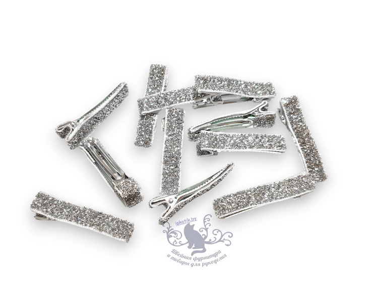 - Заготовка д/заколки Крокодил в ткани 50 мм Серебро