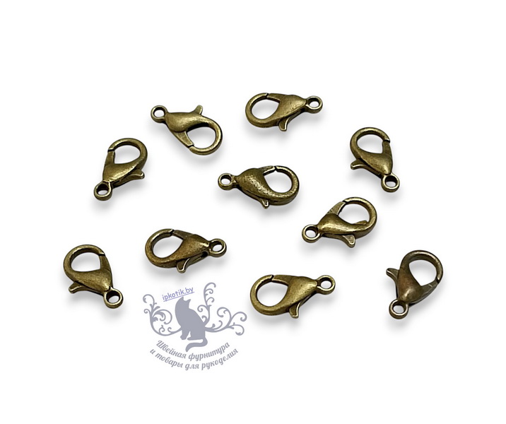 - Замок для бус Карабин 12мм 10шт/уп Латунь