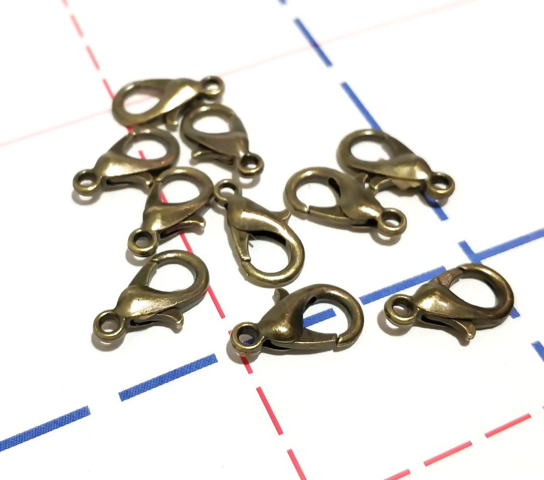 - Замок для бус Карабин 14мм 10шт/уп латунь