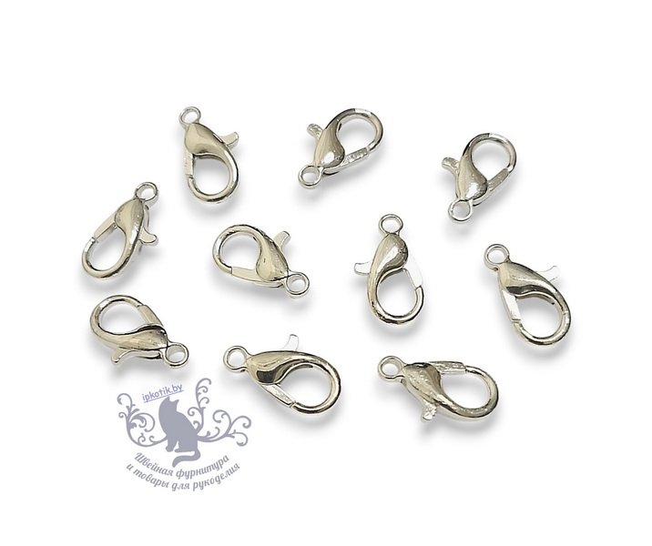 - Замок для бус Карабин 18мм 10шт/уп Серебро