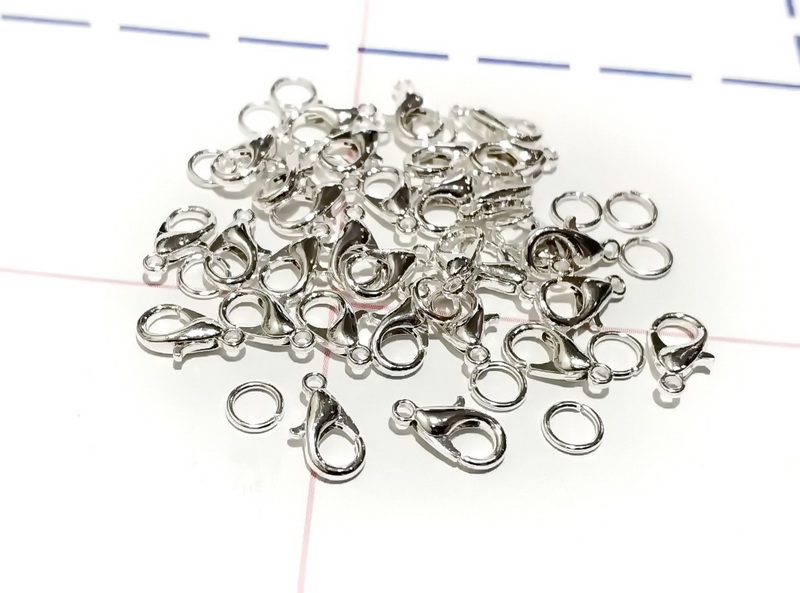 Назад Замок для бус Карабин с кольцом 10мм 10шт/уп Серебро