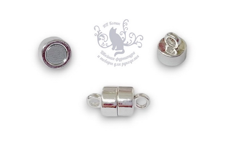 - Замок магнитный для бус Цилиндр 12мм Темное серебро